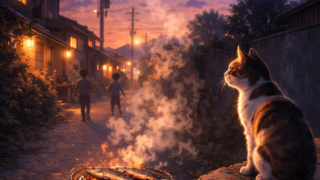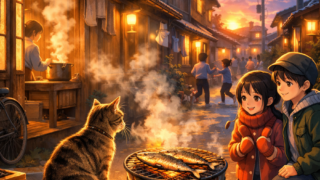 夕暮れが早い季節になると、学校帰りの空はすでに薄紫色に染まっていました。電柱の影が長く伸び、足元の砂利道がかすかに光って見えたものです。その道を歩いていると、どこからともなく漂ってくるのが、焼き魚の煙でした。七輪の炭がはぜる音、脂が落ちて立...