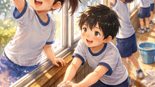 今日の出来事などを 白い校庭に響いた笑い声