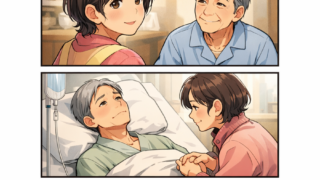 夜、薬を飲み終え、布団に入る準備をしていると、妻が「今日は疲れたでしょ」と声をかけてきた。「うん。でも、行ってよかった」そう答えると、「それならよかった」と、ほっとした表情を見せた。布団に入ってから、「夜、また動いてたら教えてね」と私が言う...