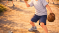 広い道路、遊ぶ子どもたち、夕方の影の長さ。