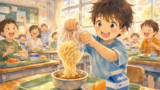 給食の時間になると、教室の空気が少しゆるむ。