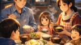 夕方になると、外の光がだんだん薄くなり、家の中に長い影が生まれます。
